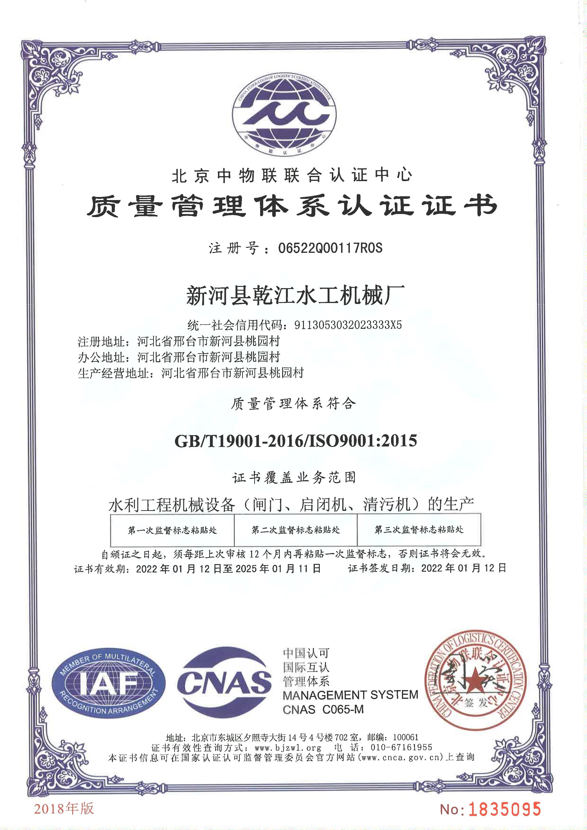 新河縣乾江水工機械廠坐落于河北省新河縣工業園區,本廠是專業研發.生產水利機械產品的廠家。本廠閘門.啟閉機.清污設備等產品的技術上具有豐富的實際經驗,并注重新產品的開發研制。        啟閉機類:QL